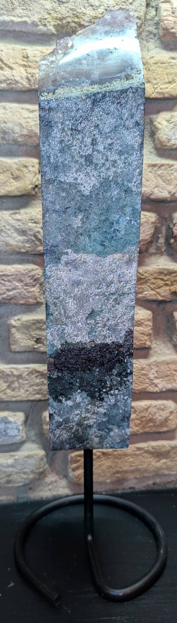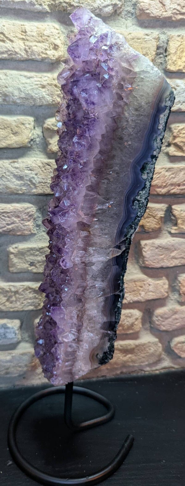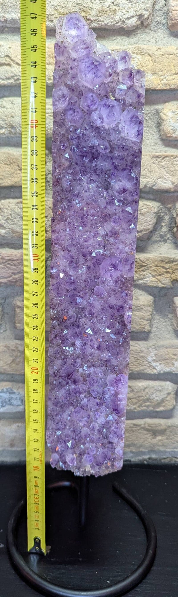 Prachtig lang stuk amethist op standaard.
